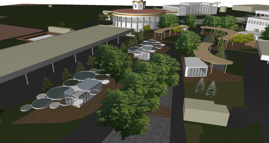 Уніфікований фудкорт із єдиною стилістикою, який інтегрують у зелену зону Експоцентру, розташується поміж дерев і буде спроєктований так, щоб не перекривати види на архітектурні пам’ятки ВДНГ.